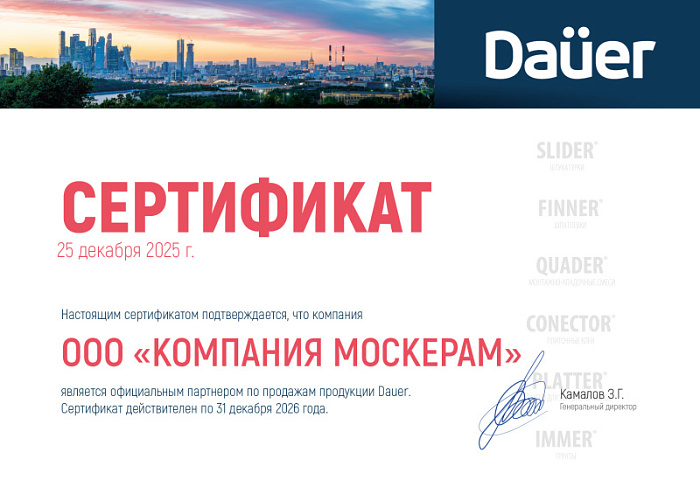 Сертификат официального дилера Dauer 2026